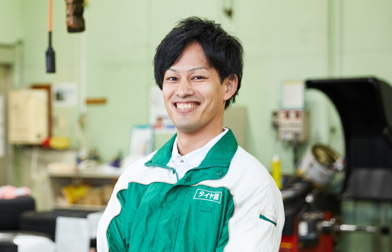 父親が趣味で車をいじっていたので、自分も整備ができるようになったら面白そうだと思い飛び込んだ仕事。サイズの大きなタイヤの交換や、アライメント(車の骨盤調整)など、難しい作業は覚えるのに時間がかかりますが、ピット作業はやってみると奥が深くて夢中になります。先輩に学びながら一人前のスタッフとして独り立ちできるように日々努力しています。