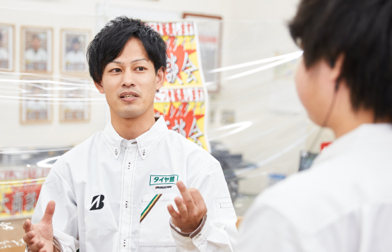 タイヤ販売で高いシェアを誇るブリヂストンの専門店として、タイヤの大切さ(価値)の普及・拡大を通じ、より安全・安心なカーライフを実現するという行動指針を掲げ、スタッフの個性を生かした高い「接客力」と、様々な「デジタルツールの活用力」を両輪にして、お客様一人ひとりに合ったご提案・寄り添った対応が支持されていると思っています。